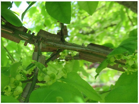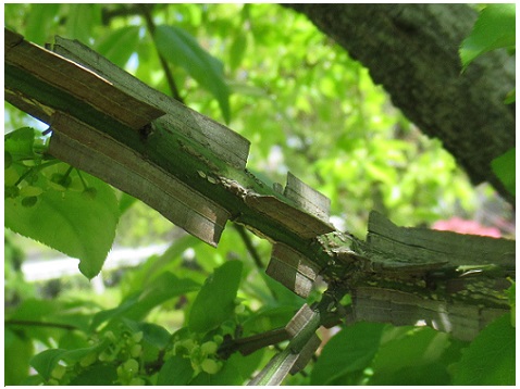 古い枝の周囲にコルク質の翼ができる