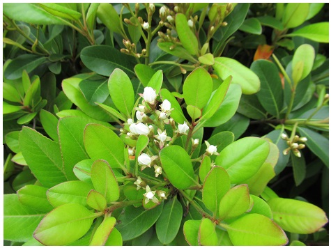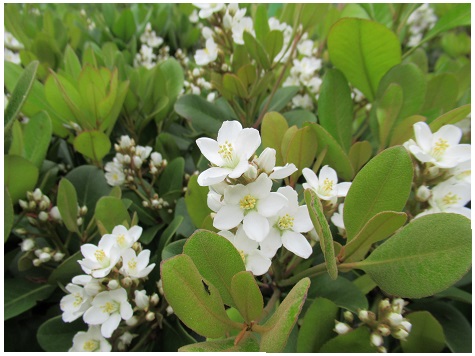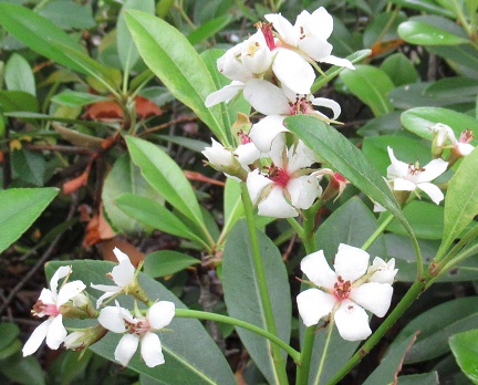 変種に葉が丸いマルバシャリンバイや